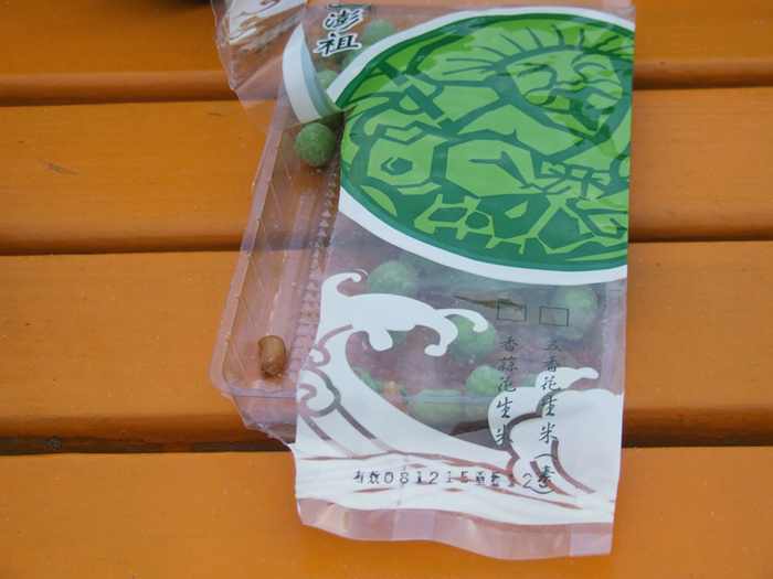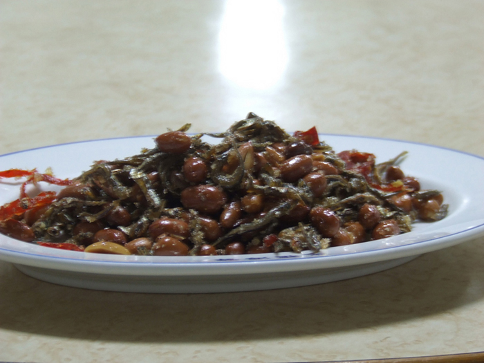 ポンフー名物の小女子と豆、台湾ビールにぴったりのつまみ。